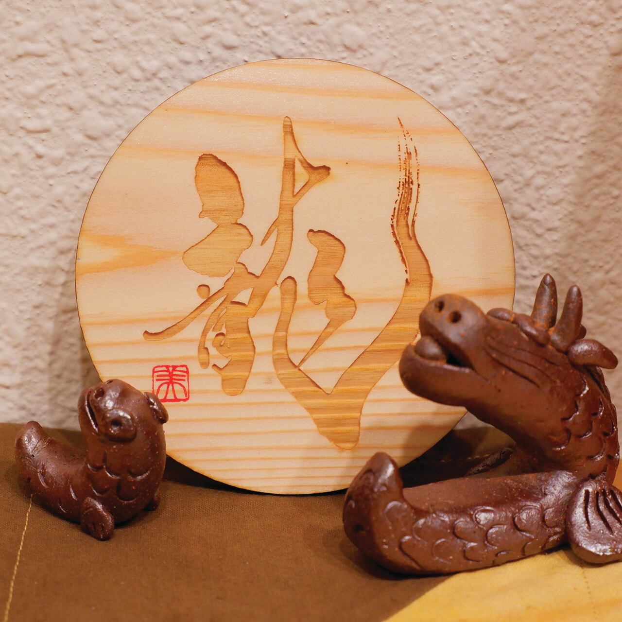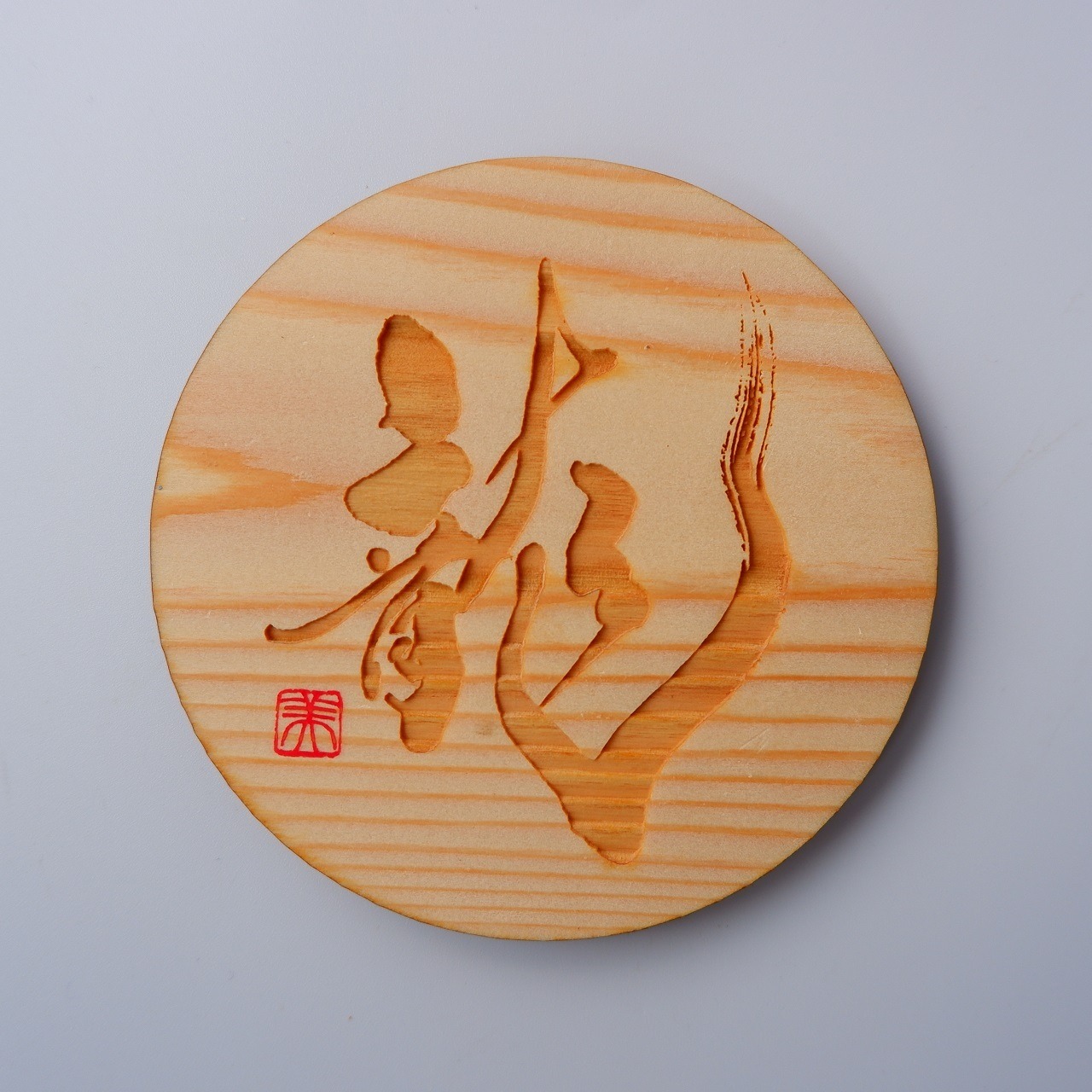 本製品は、自然豊かな町、久万高原町の天然スギに、デザイン書道家美結のオリジナル文字を取り入れた世界でたった一つの木製コースターです。
